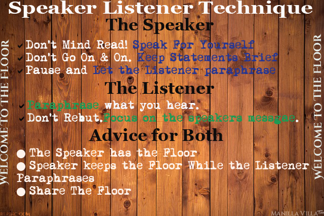 Here are some helpful steps to take to become the Awesome Listeners we all can benefit from being. Speaker-Listener Technique [www.prepinc.com]